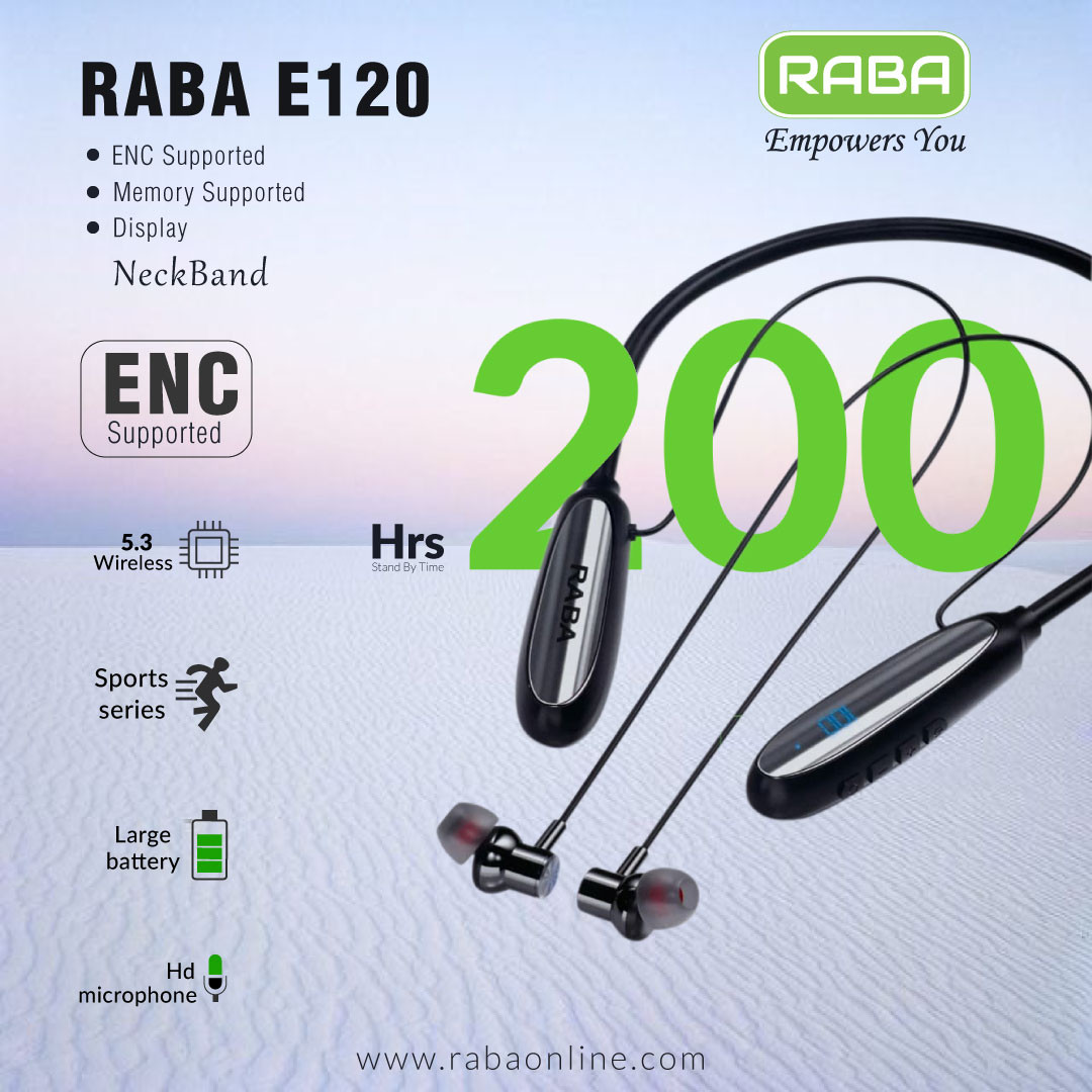 RABA E120 200Hours ENC Display NeckBand Memory Supported