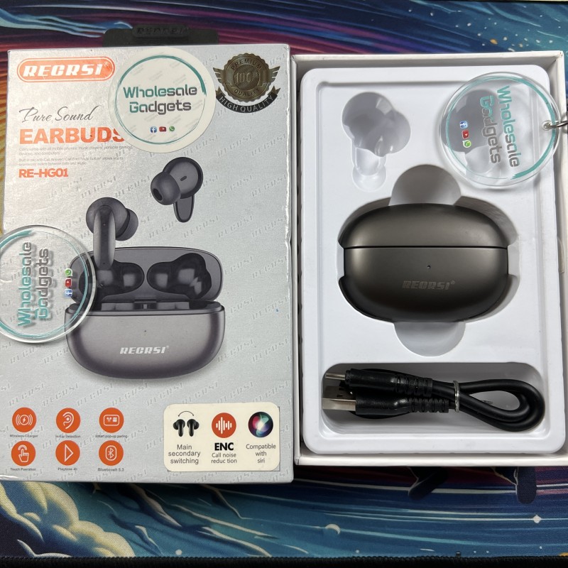 - • Recrsi RE E-HG01 Earbuds with wireless connectivity.